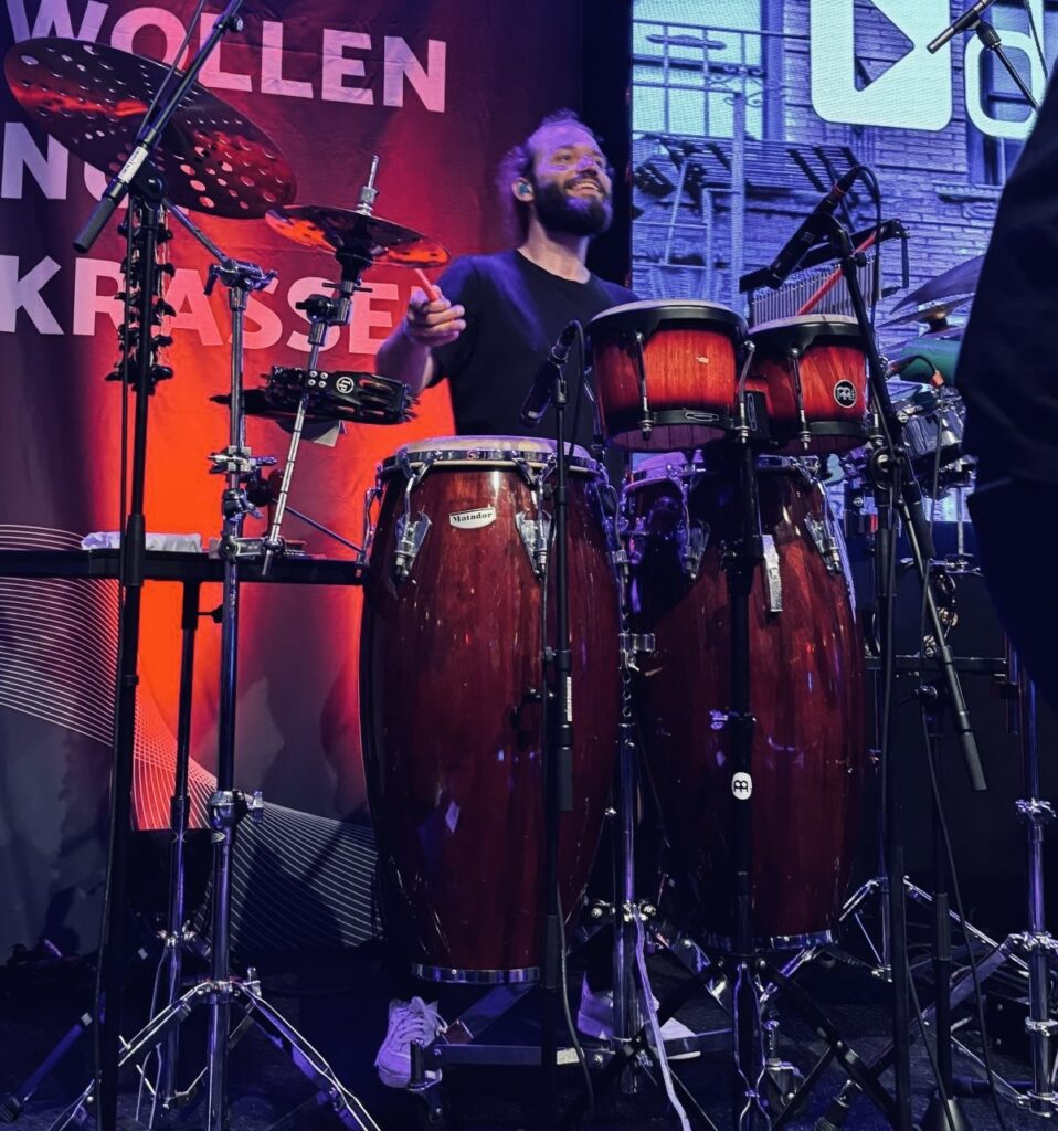 Durch seine Ausbildung als Schlagzeuger (Folkwang UdK) bietet DJ Hartwig auf Wunsch Live-Percussion – ein Highlight, das vielen Events eine besondere Dynamik verleiht. Diese Kombination aus DJ-Set und Live-Performance sorgt für mehr Energie, mehr Präsenz und einen unverwechselbaren Live-Charakter.